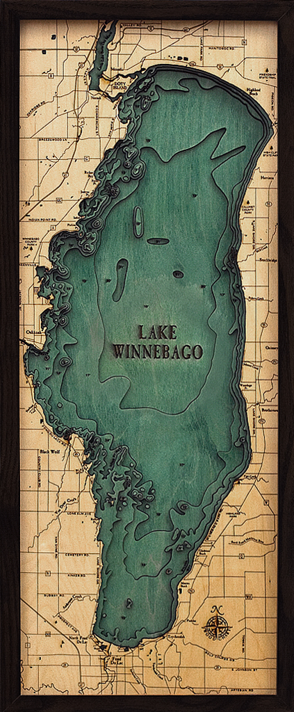 Lake Winnebago, Wisconsin 3 D Nautical Wood Chart, Medium, 13.5″ x