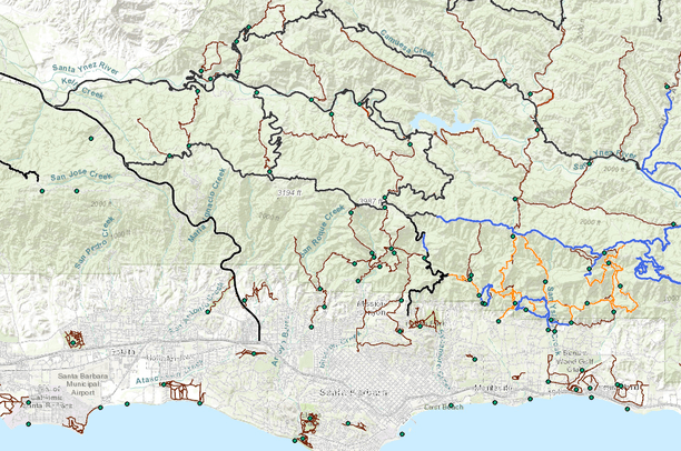 Santa Barbara Hikes Map Roads and Trails, Santa Barbara County | Data Basin: SANTA BARBARA, Calif. – The Santa Barbara City Fire Department wants to remind the public to stay safe while hiking in the heat. The National Weather Service warned of a significant heatwave that will . At 26,176 acres, the Lake Fire near Santa Barbara is the biggest blaze burning in California right now. The latest maps released by Cal Fire show the Lake Fire spreading from Zaca Lake in Los .